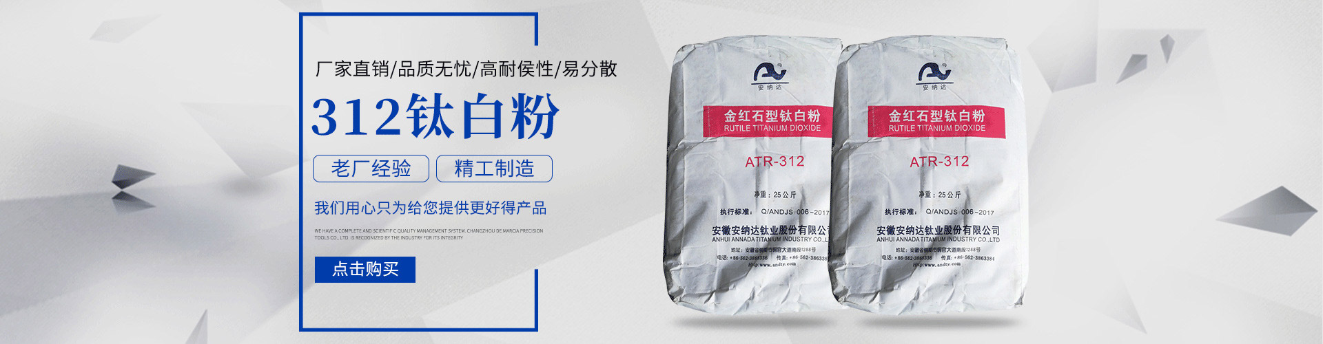 常州安鈦化工有限公司經(jīng)銷批發(fā)的鈦白粉、沉淀硫酸鋇、立德粉、滑石粉、高嶺土、炭黑、云母粉、彩色顏料、氫氧化鈣、硅微粉、氧化鐵紅、氧化鐵黑、金紅石型鈦白粉、銳鈦型鈦白粉、進口鈦白粉暢銷消費者市場,在消費者當中享有較高的地位,公司與多家零售商和代理商建立了長期穩(wěn)定的合作關系。常州安鈦化工有限公司經(jīng)銷的鈦白粉、沉淀硫酸鋇、立德粉、滑石粉、高嶺土、炭黑、云母粉、彩色顏料、氫氧化鈣、硅微粉、氧化鐵紅、氧化鐵黑、金紅石型鈦白粉、銳鈦型鈦白粉、進口鈦白粉品種齊全、價格合理。常州安鈦化工有限公司實力雄厚,重信用、守合同、保證產(chǎn)品質(zhì)量,以多品種經(jīng)營特色和薄利多銷的原則,贏得了廣大客戶的信任。